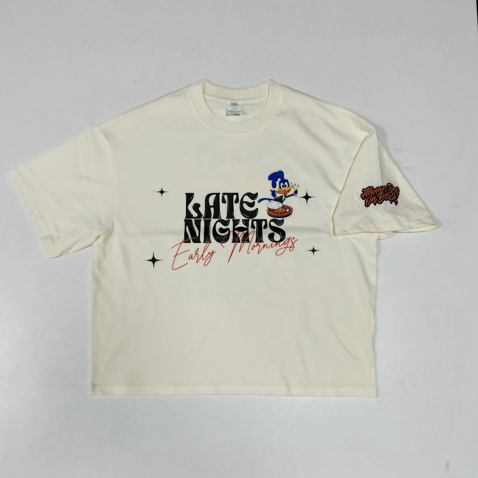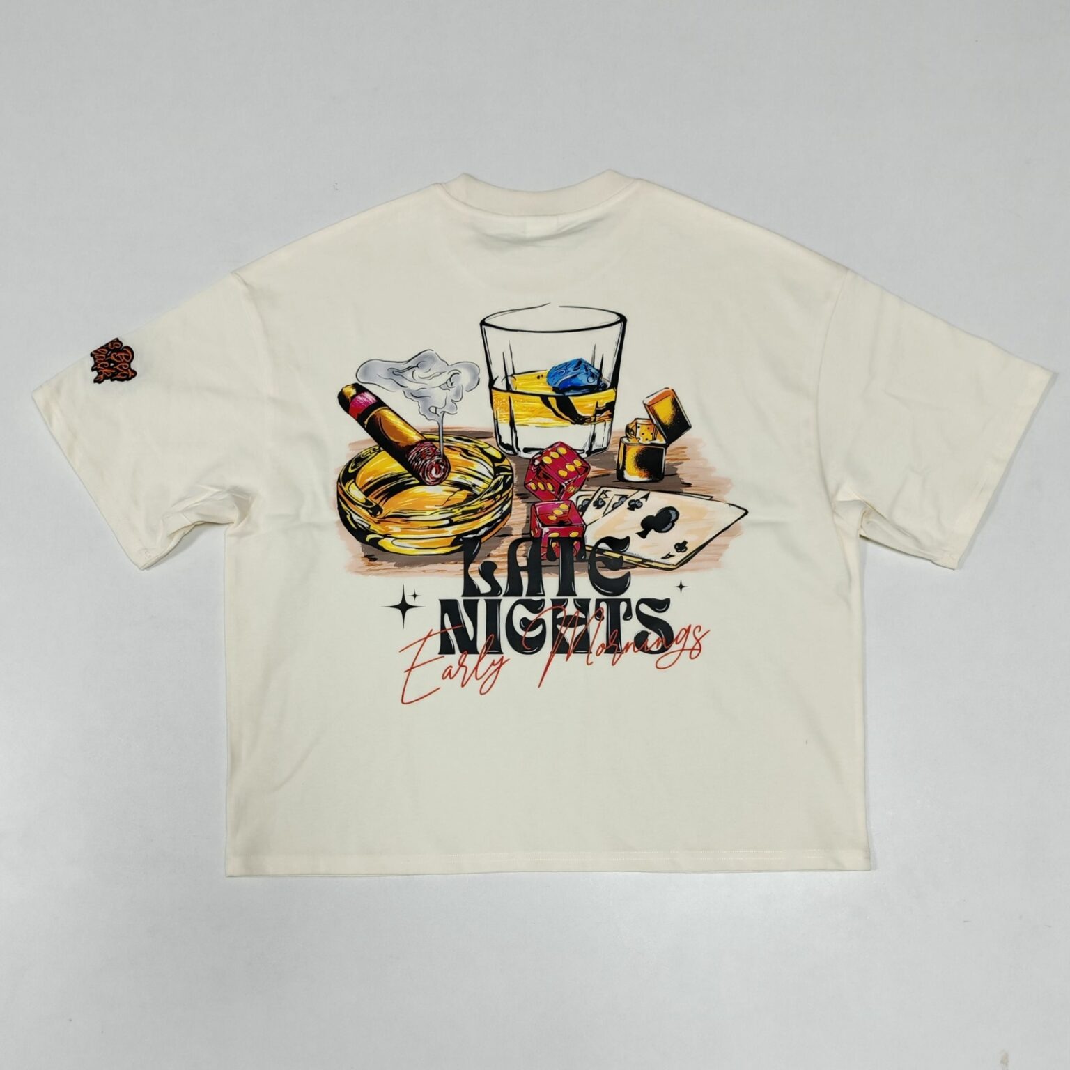 A tribute to the grind that never sleeps. The Late Nights Early Mornings Tee features bold black lettering with a red shadow effect and playful cursive script, paired with a cartoon character that captures the exhaustion and hustle of nonstop ambition. From the sleepy eyes to the coffee mug, it’s a wearable mood for anyone chasing dreams around the clock.